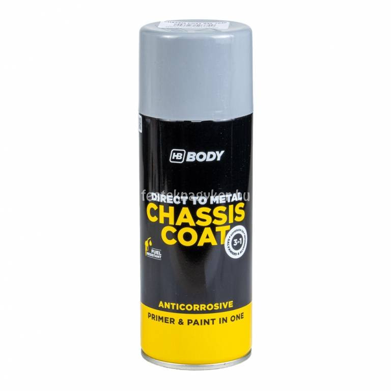 A HB Body Chassis Coat három az egyben termék egy alkid bázisú korróziógátló, alapozó és fedőfesték egyben. Járművek alvázára és mindenféle fémfelület védelmére ajánlott (acél, galván, aluminium, stb). Zink foszfát tartalmának köszönhetően kiváló rozsdagátló. Jól tartja a színét, gyorsan szárad és selyemfényű felületet ad. Megfelelő előkészület után (csiszolás és zsírtalanítás), külön alapozás nélkül közvetlenül – akár a rozsdás (kivéve pergő rozsda) – fémfelületre felvihető. Kiválóan alkalmas otthoni, kültéri (vagy akár beltéri) fémfelületek védelmére is. Pl. kerítés, vaskapu, csatorna, stb. Javasolt a kenhető kiszerelés felhasználása során keletkezett apróbb hibák kijavítására is.